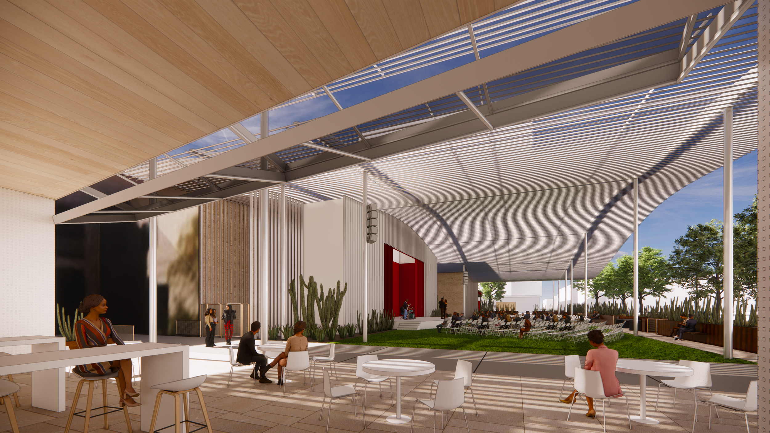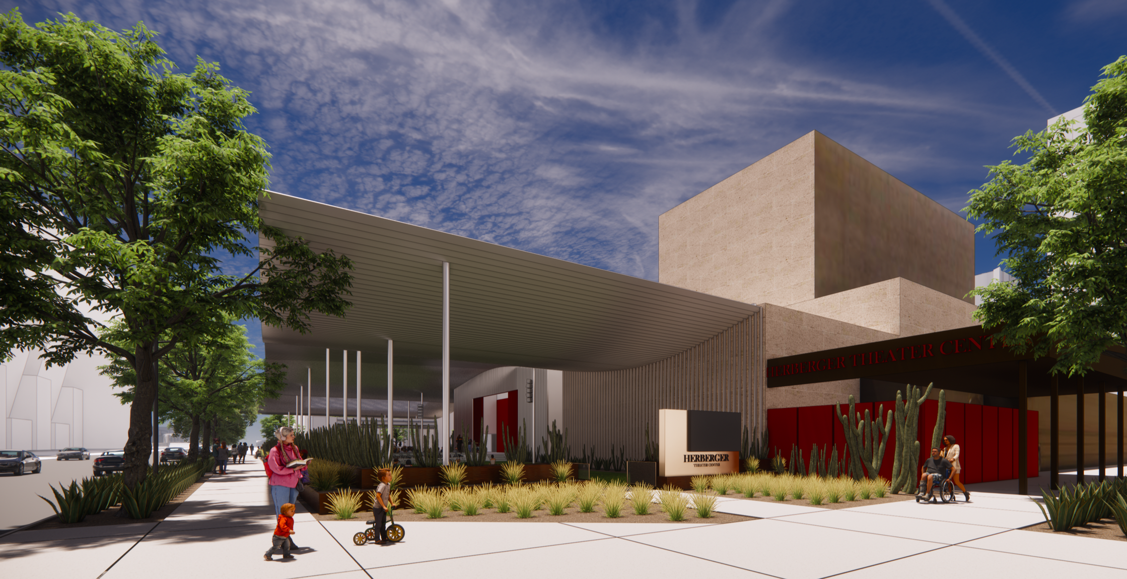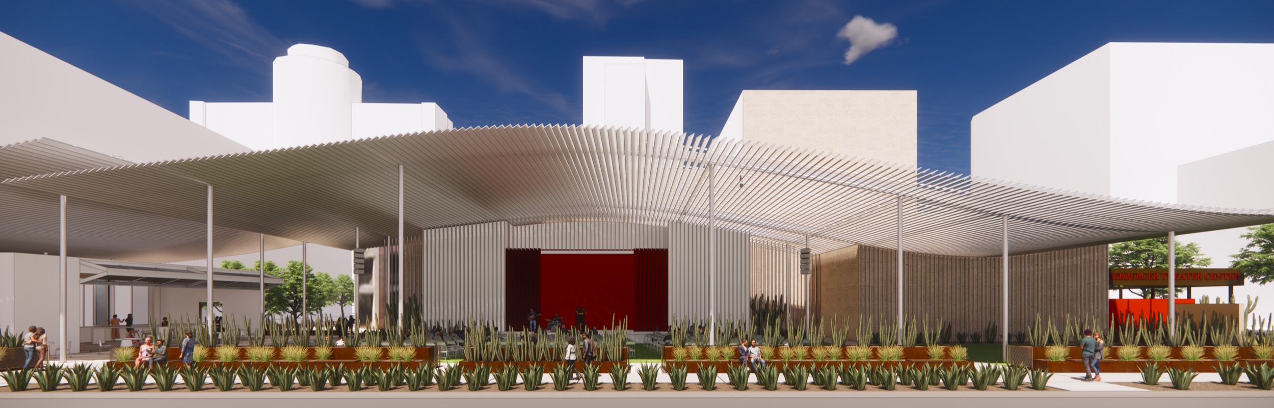 The Herberger Theatre Pavilion in downtown Phoenix, Arizona, is a multipurpose outdoor space. Designed for outdoor music shows, the pavilion is intended to be a welcoming space for everyone during off times. A cafe on the southern side of the lot serves both show attendees and regulars. The north side opens up to the Arizona Centre, attracting customers to a pristine pavilion.